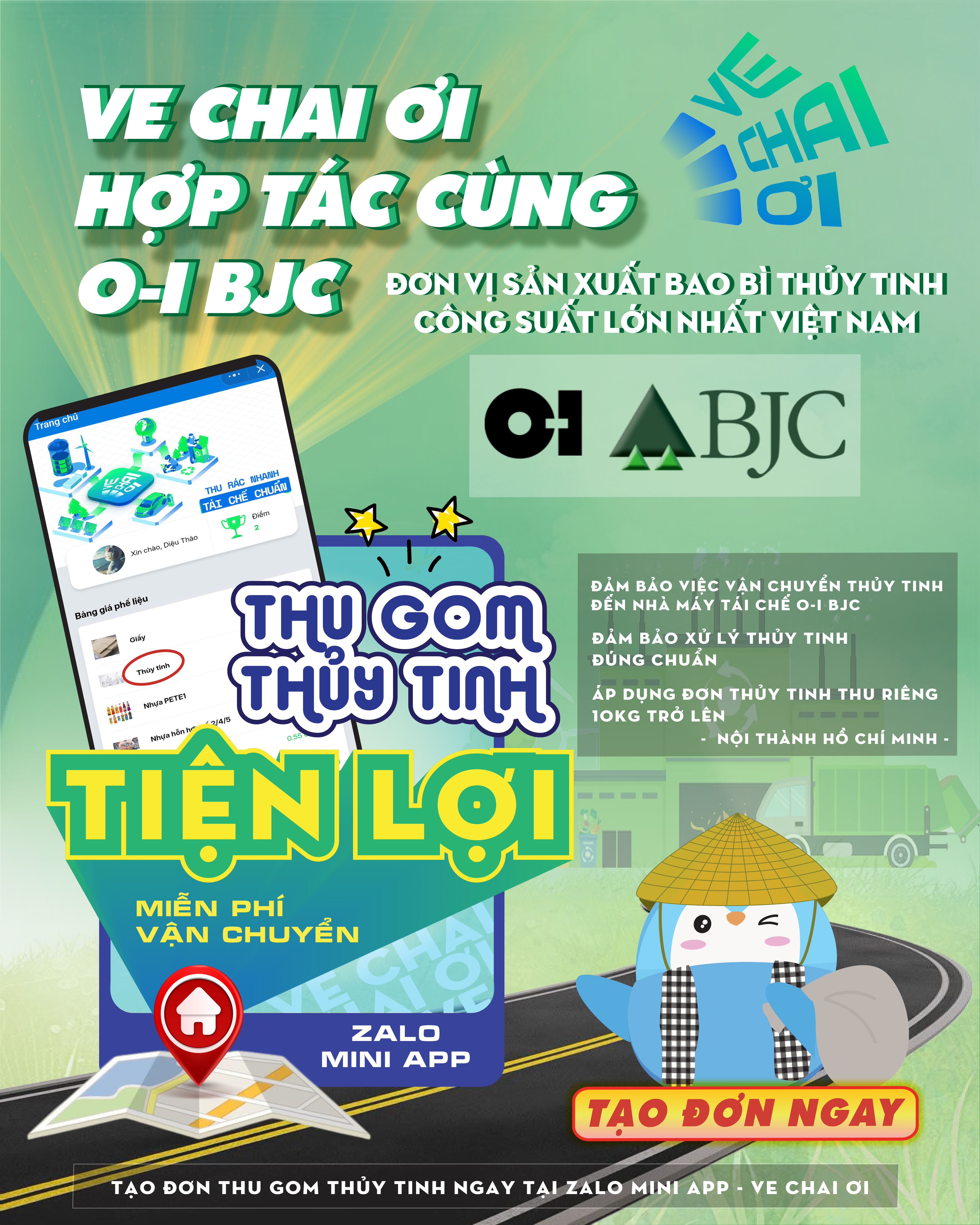 Ngay hôm nay, bạn có thể dễ dàng tạo đơn thu gom thủy tinh trực tiếp trên Zalo Mini App Ve Chai Ơi.